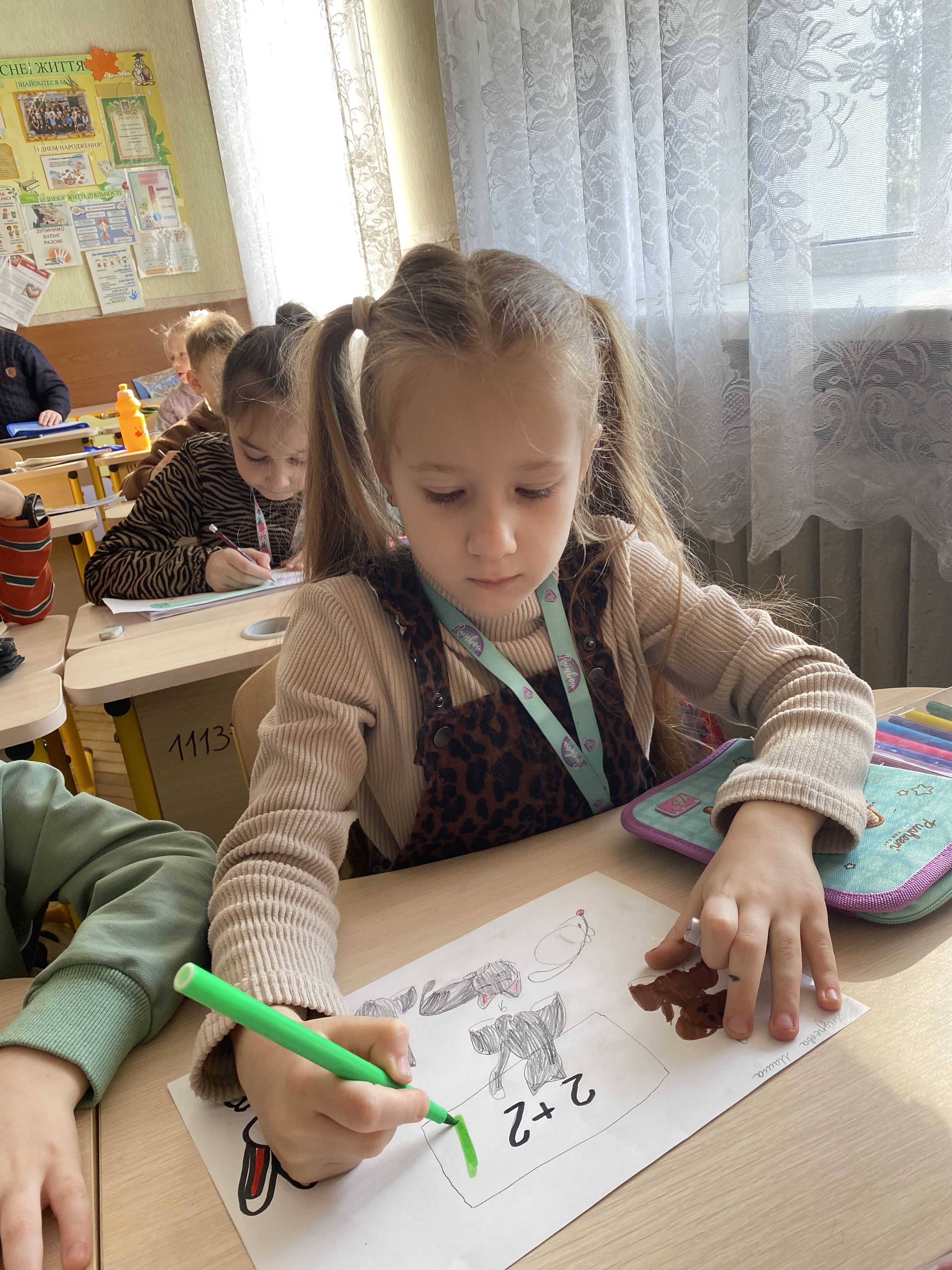 Інтерактивне заняття з учнями 2 класу «Тваринка захисник» направлене на розвиток резильєнтності в учнів. Діти виконували дихальні вправи, вправи на мʼязову релаксацію, малювали тваринок, які будуть їхніми захисниками.