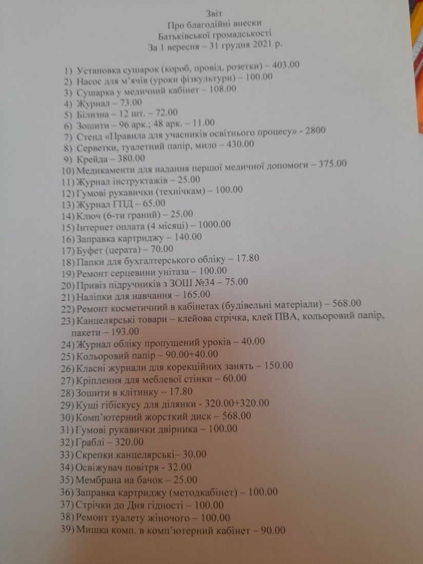 Звіт про використання благодійних внесків (літо 2021 року) з 01.06.2021 до 31.08.2021