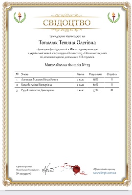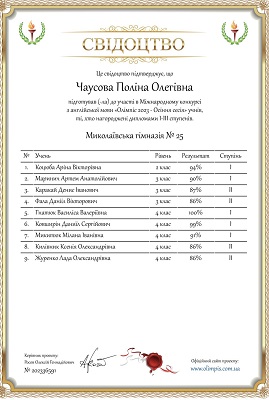 27.09.2023 р. педагоги гімназії Пирожок Я.Г. і Єфименко А.В. провели змістовну вікторину для учнів 3 – 6 класів з англійської мови.