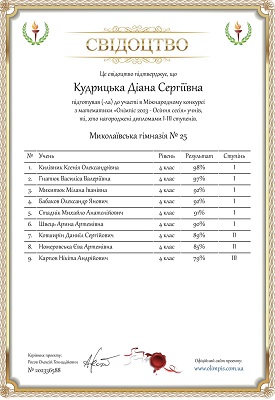 21 грудня в Миколаївській гімназії 25 відбулося свято для учнів 1 класу” 100 днів навчання”