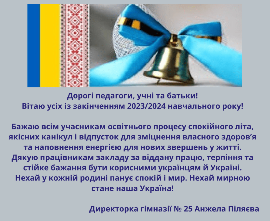 Привітання директорки Миколаївської гімназіїї № 25 Піляєвої А.І. з Днем знань