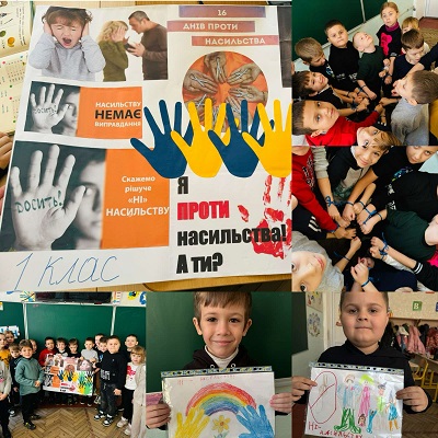 В рамках акції проведено інформаційні та пізнавальні позакласні заходи: виставка соціальних плакатів «Ми проти насильства» (5-9 кл.), конкурс дитячих малюнків «Світ без насильства» (1-4 кл.).