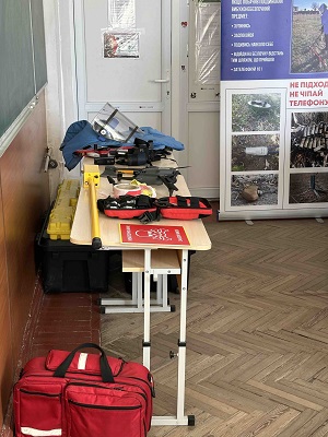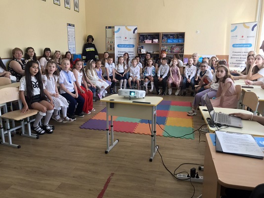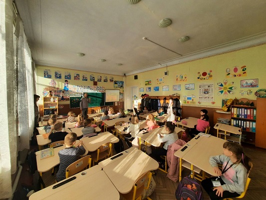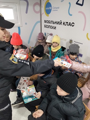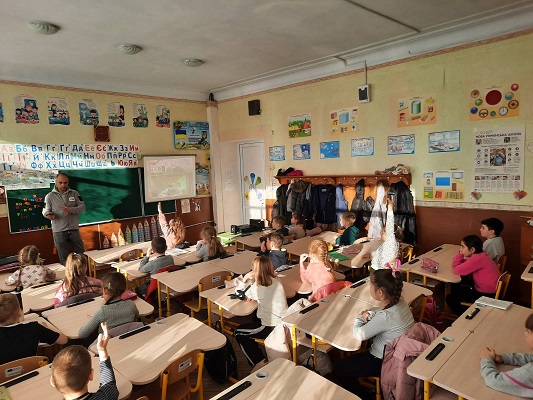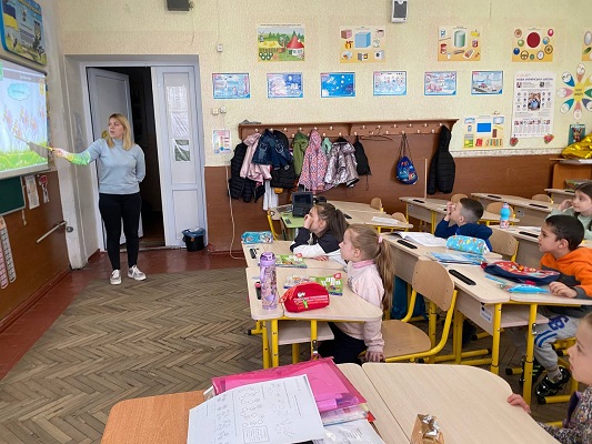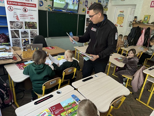 Урок з мінної безпеки в мобільному класі для учнів 3 і 4 класів провели працівники ДСНС в Миколаївській області.